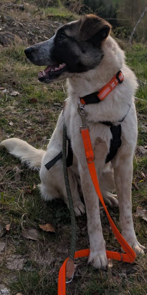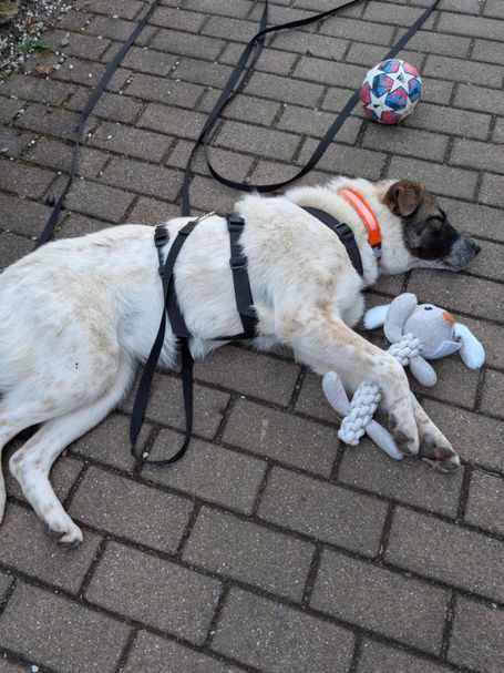 Ein Zuhause mit einem freundlichen Ersthund oder regelmäßigen Hundekontakten wäre für sie ideal, da sie sehr gerne mit Artgenossen spielt. Kinder begegnet sie bislang neugierig, dennoch sollte der Umgang behutsam erfolgen. Das Alleinebleiben muss noch weiter aufgebaut werden. Treppen meistert sie bereits gut, benötigt aber gelegentlich noch Unterstützung. Bei Katzen entscheidet vermutlich die Sympathie.