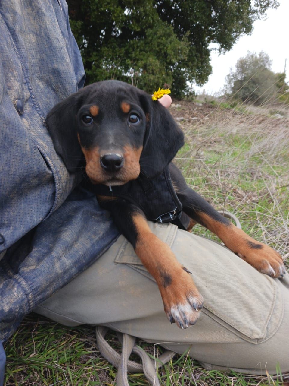 Demnächst beginnen wir mit dem Leinentraining und gewöhnen die Kleinen an ihr Geschirr.