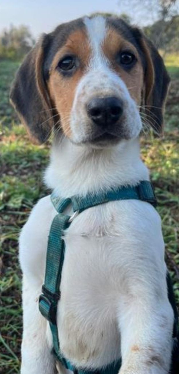 Nanni ist eine sehr offene und freundliche Welpin, die die Nähe zu Menschen liebt und aktiv Aufmerksamkeit sucht. Sie geht neugierig und selbstbewusst auf ihre Umwelt zu und strahlt dabei eine fröhliche, positive Energie aus.