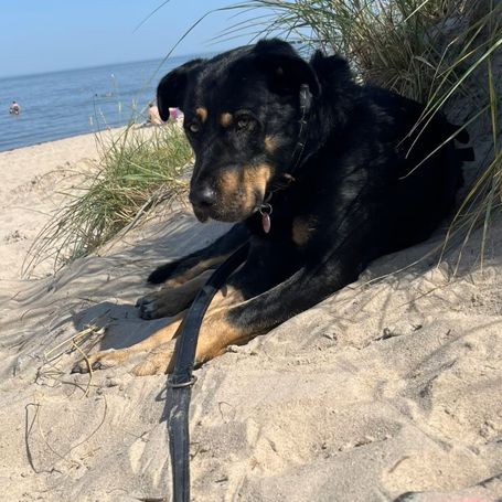 Odin ist ein ruhiger, sanfter Rüde mit einem großen Herzen. Er liebt ausgiebige Spaziergänge, genießt danach aber genauso gern entspannte Kuscheleinheiten auf der Couch.