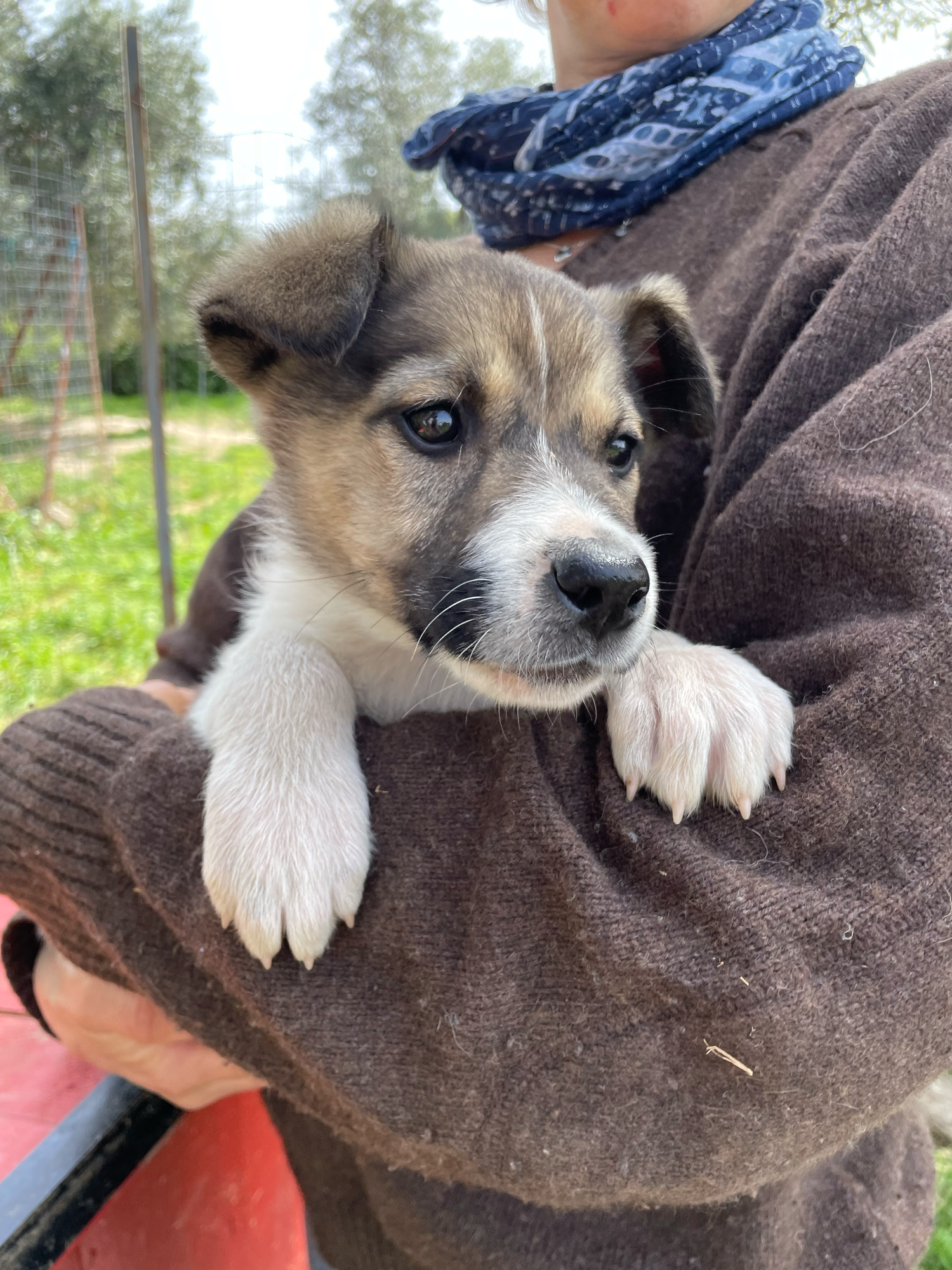 Die 5 Q-Geschwister sind liebevolle und menschenbezogene Welpen. Sie erkundigen neugierig und interessiert ihre Umwelt und spielen und toben liebevoll miteinander. Danach schlafen sie gerne zusammen in der Sonne und lassen sich den Bauch kraulen.