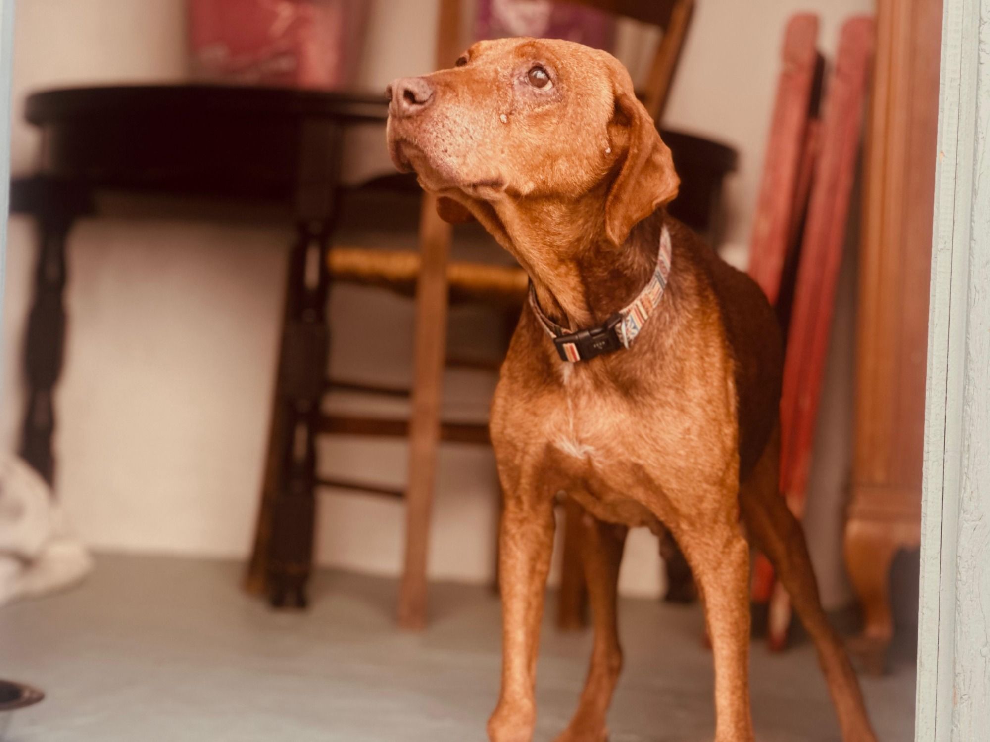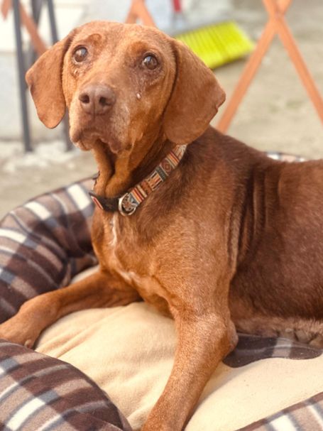 Die liebevolle und sanfte Hündin Tina wurde wahrscheinlich jahrelang für Jagd oder Zucht genutzt und im Alter einfach zurückgelassen. Nun blüht sie auf ihrer Pflegestelle auf und genießt gemeinsame Momente auf dem Sofa.