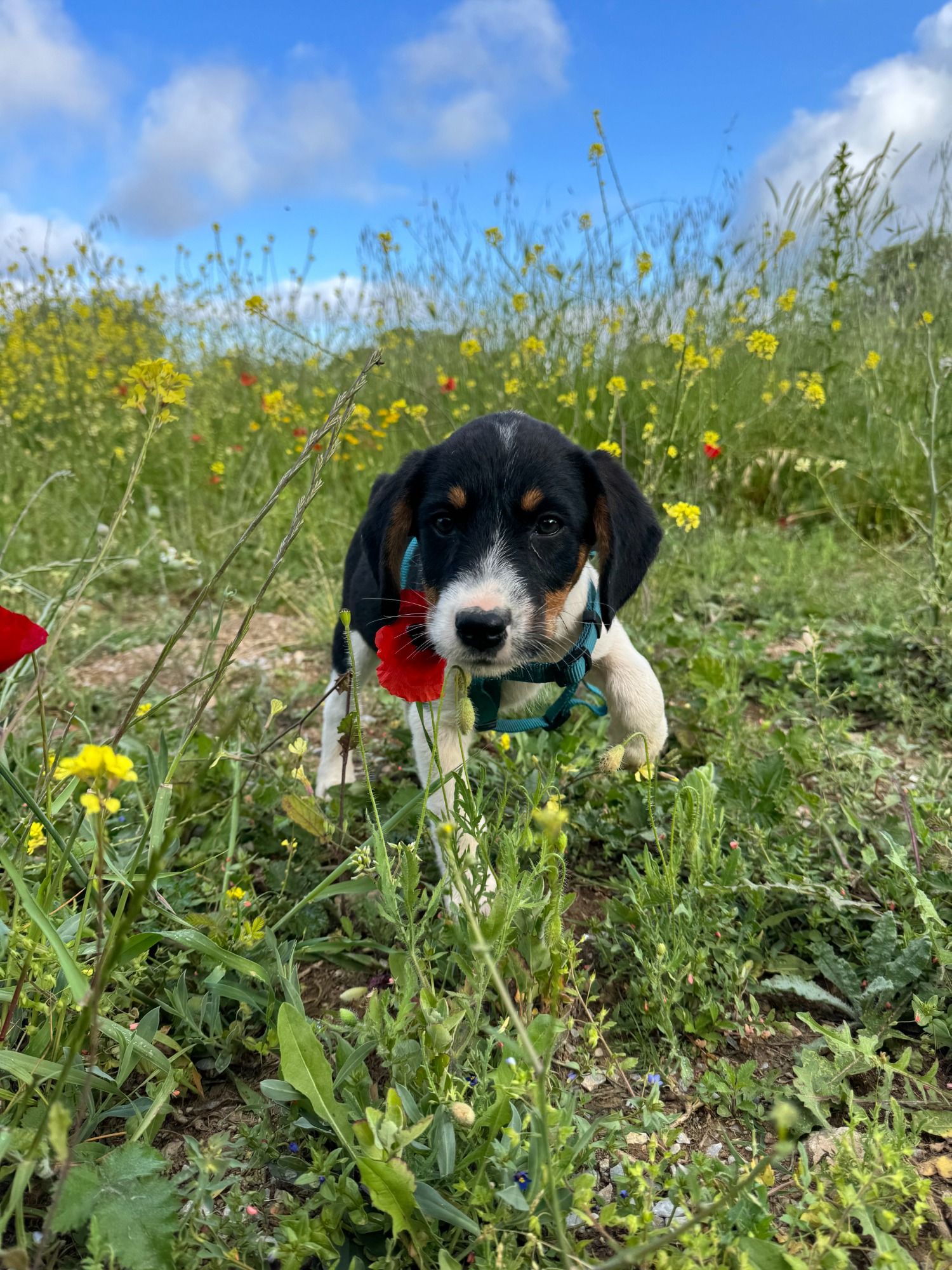 Auch an das Laufen an der Leine wird sie spielerisch herangeführt und zeigt sich dabei lernwillig und gelassen. Sie ist ein kleiner Allrounder, der sowohl draußen beim Toben als auch drinnen beim Kuscheln glücklich ist.