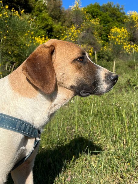 Yoshi ist ein junger, lebensfroher und sehr intelligenter Rüde, der noch mitten in seiner Entwicklung steckt. Er ist freundlich, neugierig und offen – Menschen gegenüber zeigt er sich sehr zugewandt und lernbereit.