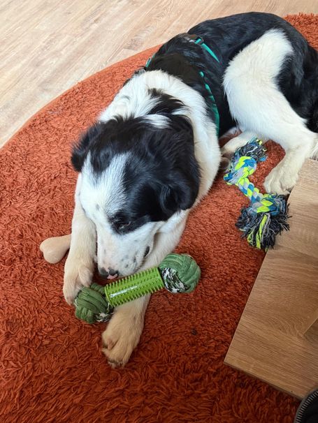 Yuki ist ein sanfter, sensibler Junghund, der die Welt noch in seinem eigenen Tempo entdeckt. Anfangs zeigt er sich etwas schüchtern und vorsichtig, besonders bei neuen Menschen. Doch mit Geduld und liebevoller Ansprache öffnet er sich und zeigt dann sein fröhliches, anhängliches Wesen.